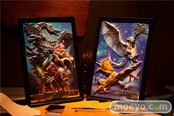 平面のイラストアートとは異なり、キャラクターそれぞれが手前側に浮き上がる半立体加工がなされ、光による陰影が、イラストではありえないリアルな臨場感をもたらします。