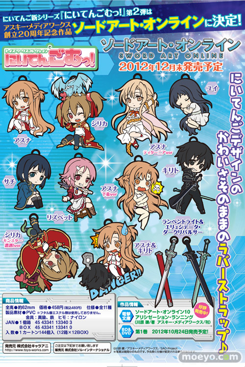 株式会社キャラアニは、製品としては勿論、雑誌付録でも大好評展開中の「トイズワークスコレクション にいてんごむっ!」シリーズの新作として「ソードアート・オンライン にいてんごむっ!」を2012年12月末頃発売します!