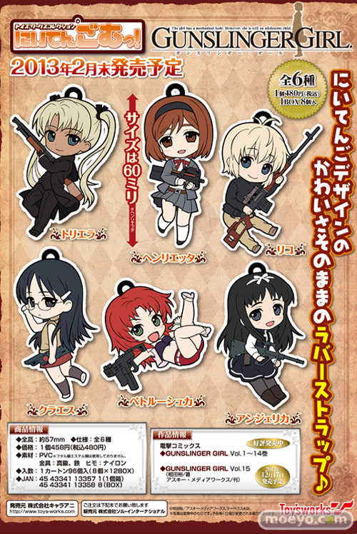 商品はGUNSLINGER GIRLに登場する6人の少女達を2.5頭身のイラストで可愛いラバーストラップにしちゃいました!