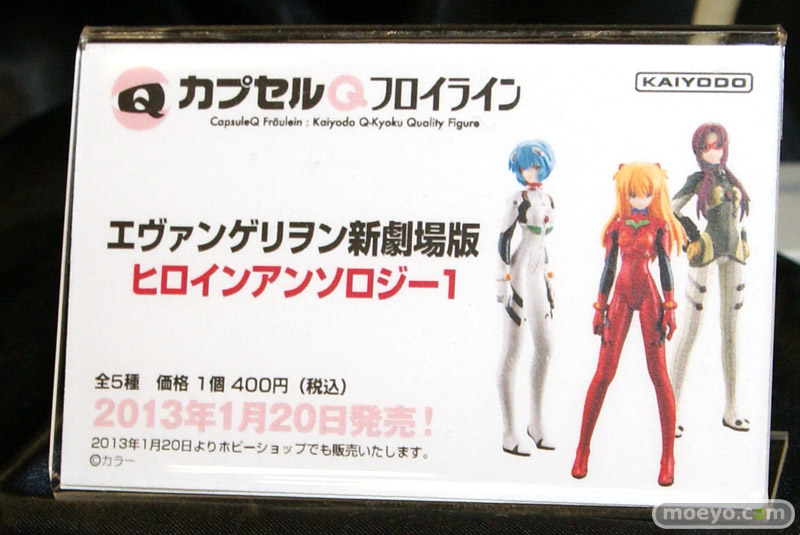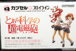 「宮沢模型 第30回 商売繁盛セール」のユニオンクリエイティブブースで、「エヴァ」「レールガン」「Fatr/Zero」「化物語」などの海洋堂「カプセルフロイライン」の新作がズラリと展示。それら展示の様子を中心にお伝えします。