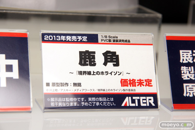 「メガホビ EXPO2012 Autumn」の会場で展示されていた、アルターの新作フィギュア展示の様子を、2回に分けてお伝え。こちらでは、画像の「境界線のホライゾン 鹿角」や「ミシティ」「ラウラ」「眞鍋和」「テイルズシリーズ」「うたプリ」などを。