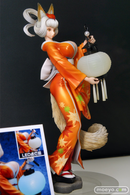 耳と尻尾の毛並みはもちろん、提灯やヴィネット風台座の細やかな造形にもご注目ください。