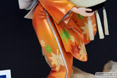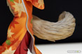 色鮮やかな紅葉柄の着物はパール塗装が施され、独特な光沢感が魅力的な彼女のプロポーションを引き立てます。