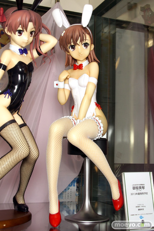 先日予約開始となったフリーイングの「とある科学の超電磁砲(レールガン)」の「白井黒子」と初公開?となる「御坂美琴」のバニーVer.の彩色サンプル展示が、ボークスホビー天国2階で開始。こちらでは「御坂美琴」の展示をお伝え。