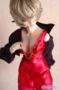 黒シャツと赤いミニドレスがエレガントな雰囲気のセクシーな衣装!