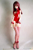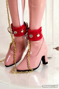 赤い拘束具にはクリスタルカラーのラインストーン、チェーンはゴールドカラーとスタイリッシュなグッズデスw!