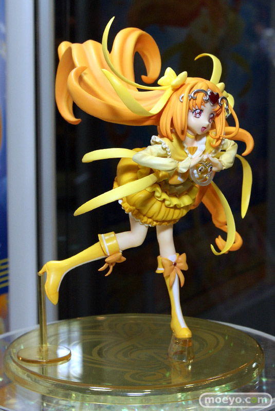 「メガホビ EXPO2012 Autumn」の会場で、必殺技「プリキュア・スパークリングシャワー」のポーズで立体化されたアルファオメガ「スイートプリキュア♪ キュアミューズ」のPVC試作成形品サンプルが展示。すごく・・・黄色いです・・・。