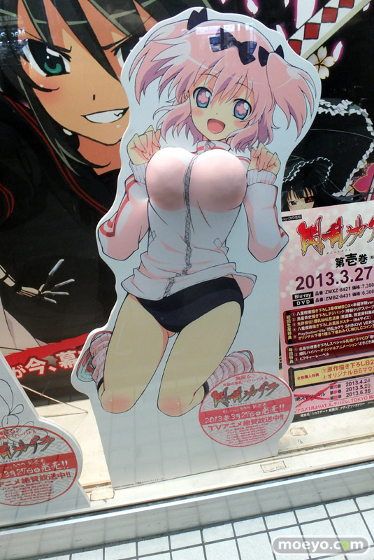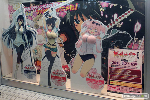 アニメ「閃乱カグラ」のBlu-ray/DVDの第壱巻が3月27日に発売されます。その告知で、アキバのとらのあな秋葉原店Bのショーケースで、斑鳩、飛鳥、雲雀のおっぱいが大迫力の立体で再現された「爆乳スタンディ」の展示が開始!