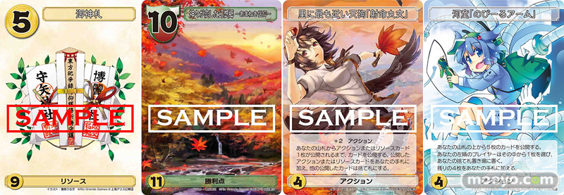 本作「東方風神録編」では、多数の人気キャラクターの参戦はもちろん、新たな超強力リソースカード、従来の戦略を大きく変える勝利点カードが登場します。これまでのシリーズファンにも新鮮な驚きと興奮をお約束できる、「東方祀爭録」の自信作です。