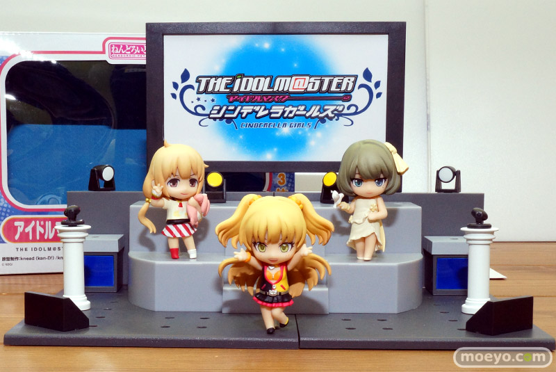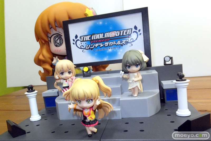 大人気ソーシャルゲーム『アイドルマスター シンデレラガールズ』より、”双葉杏””高垣楓””城ヶ崎莉嘉”がSレア+衣装になって、ねんどろいどぷちに登場!さらに組み合わせ自由な大迫力のライブステージ型台座がセットになり、まさに”LIVEバトル”が再現可能に!オブジェクトの配置を変えれば、アイドル5人をステージに並べることもできます。