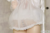 ウィッグは人気の高い黒髪の姫カット、衣装は真っ白なロリータファッション風のベビードール衣装セットになります。