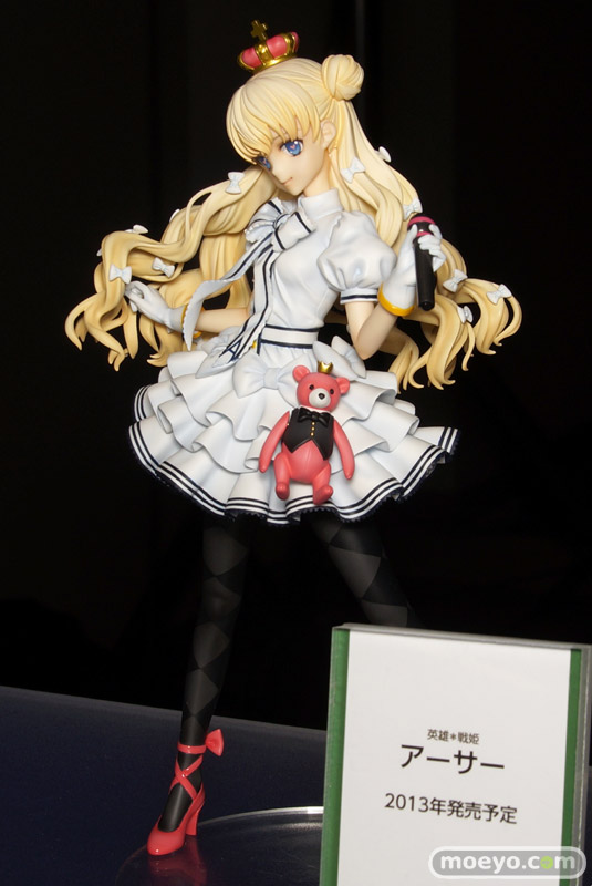 「2013冬 ホビーメーカー合同商品展示会」の会場で、Gift「英雄戦姫 アーサー」の彩色サンプルが展示。特徴的なハート型の瞳や、美しく流れる金髪など、躍動感を感じる逸品です!無論?スカートの奥も確認してみました!