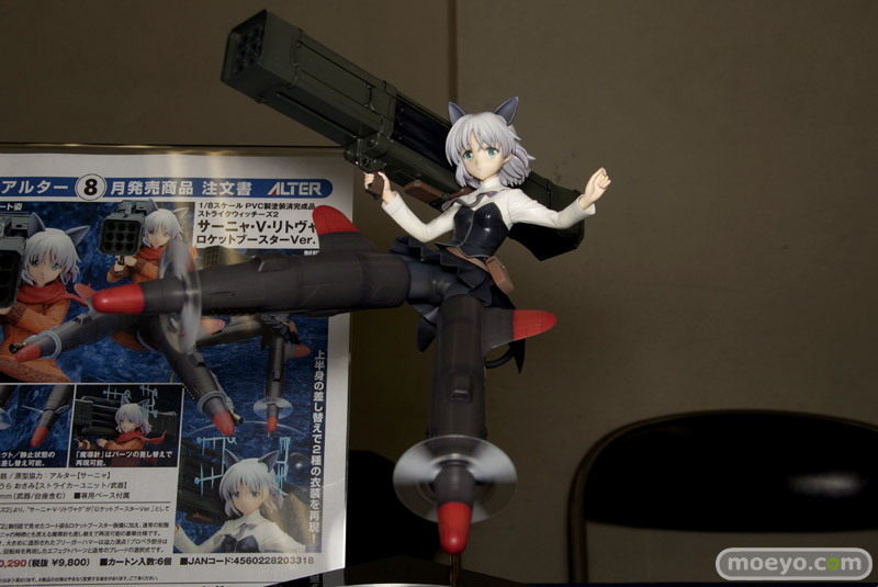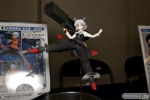 「宮沢模型 第31回 商売繁盛セール」の会場で、アルター「ストライクウィッチーズ2 サーニャ・V・リトヴャク ロケットブースターVer.」の、通常の制服姿の彩色サンプルが展示。このほか、第6話で見せたコート姿にすることも可能です!