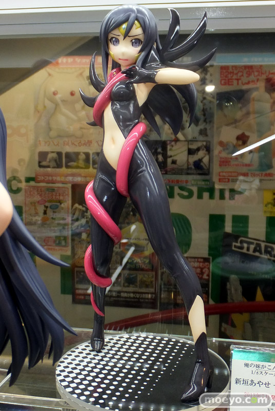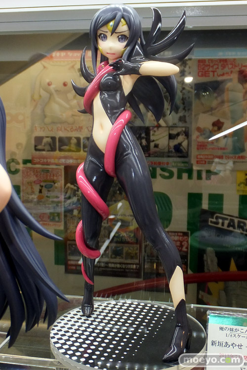 コトブキヤ「俺妹 新垣あやせ -タナトス・コスver.-」の彩色サンプルが、コトブキヤ秋葉原館4Fで展示中。前からだとややセクシーな普通のボンデージといった感じですが、後ろから見ると、尻の割れ目ほぼ丸出しというすごい状態ですw