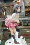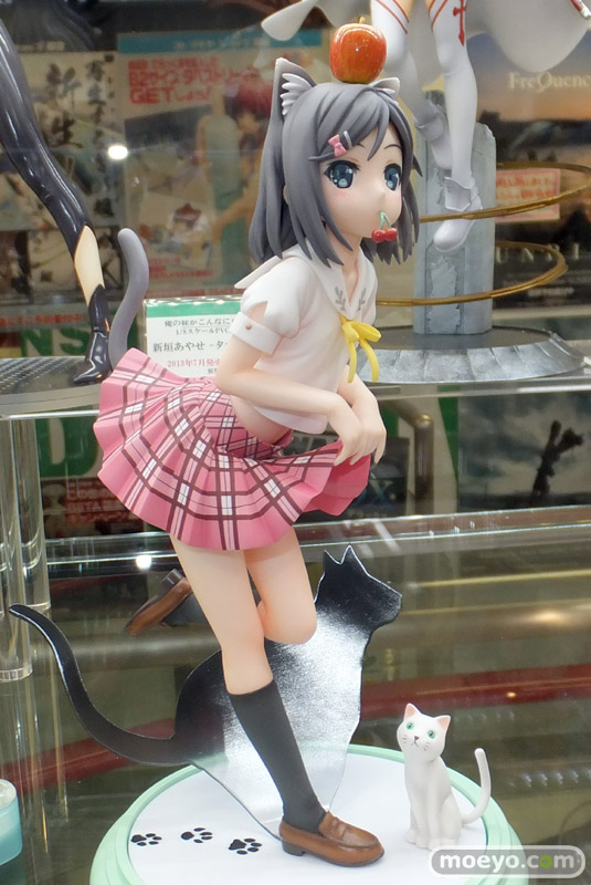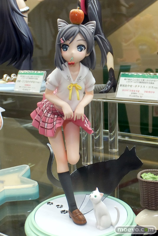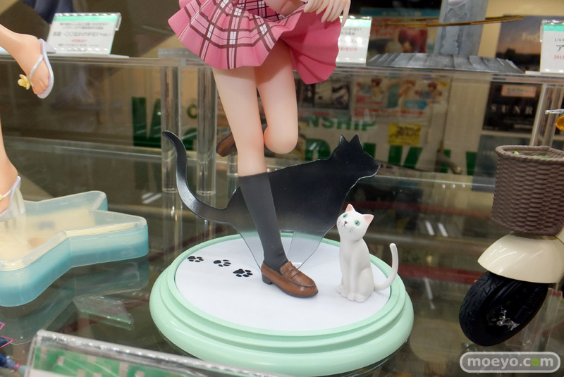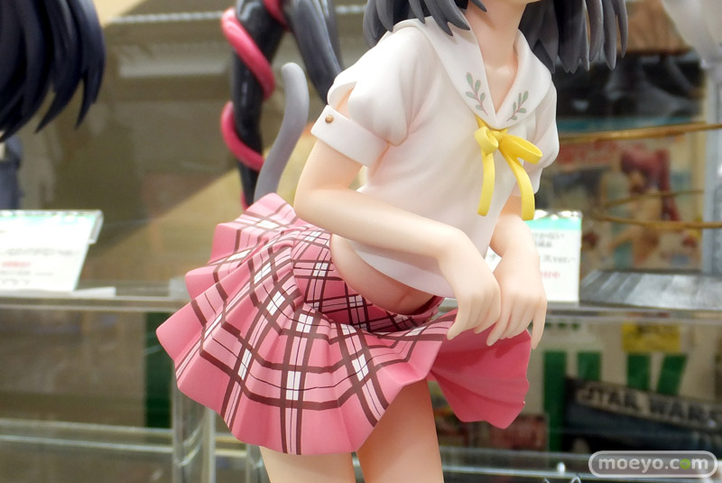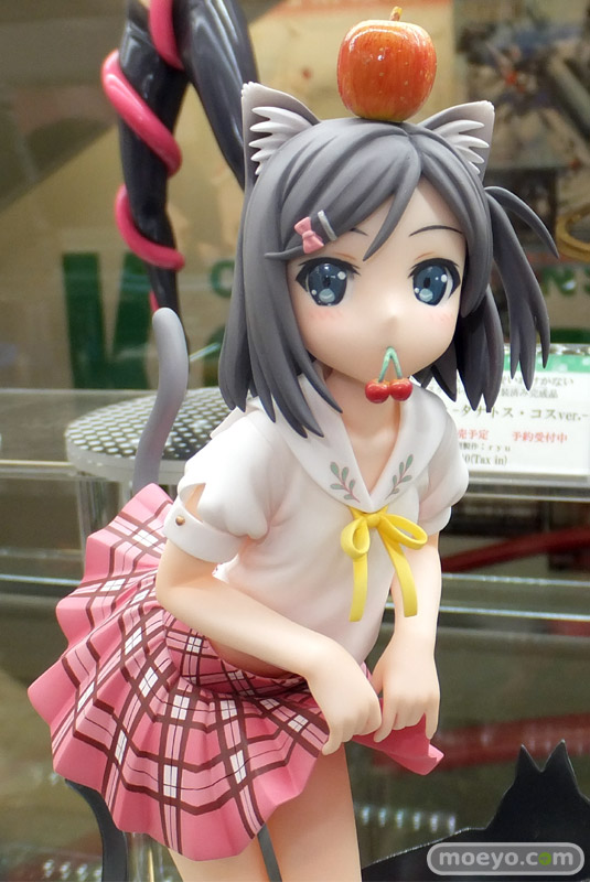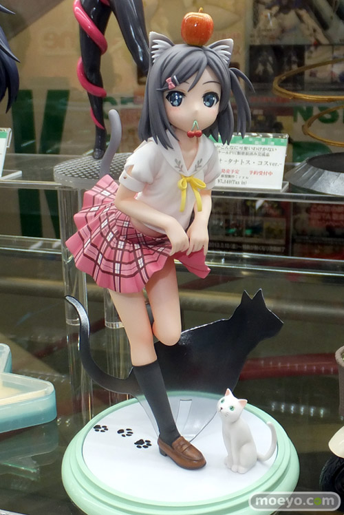 コトブキヤ「変態王子と笑わない猫。 筒隠月子」の彩色サンプルが、コトブキヤ秋葉原館で展示中。『「月子」にネコ耳としっぽがはえたイラストを元に立体化』というもので、しっぽでスカートめくれているので、後ろから見れば必然的にパンツ。