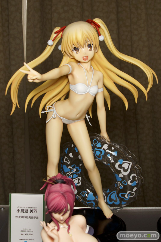 「宮沢模型 第31回 商売繁盛セール」の会場で、本日(5月8日)予約開始した、フリーイング「パパのいうことを聞きなさい! 小鳥遊美羽 水着Ver. 」の彩色サンプルが展示。1/4スケールだからこその、肉感的なボディラインに注目です!