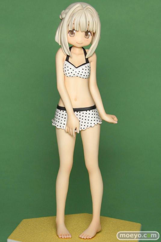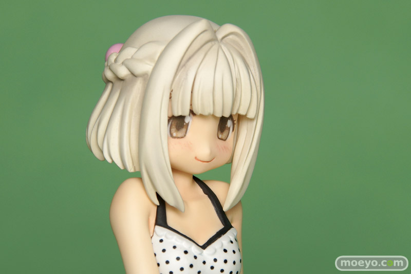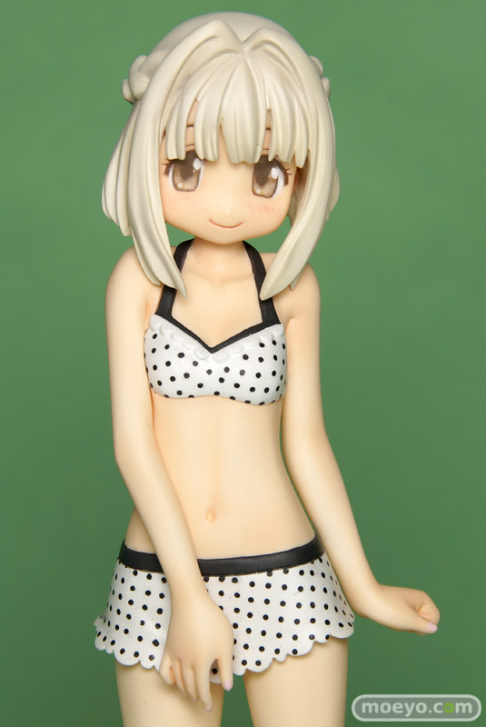 ウェーブ「BEACH QUEENS ひだまりスケッチ×ハニカム なずな」の彩色サンプルを見せて頂きました。引っ込み思案で内気なポーズと、控えめな笑顔は思わず保護したくなるくらいのラブリーさです♪あと右手の位置が割と絶妙。