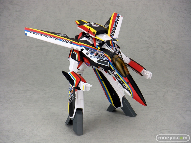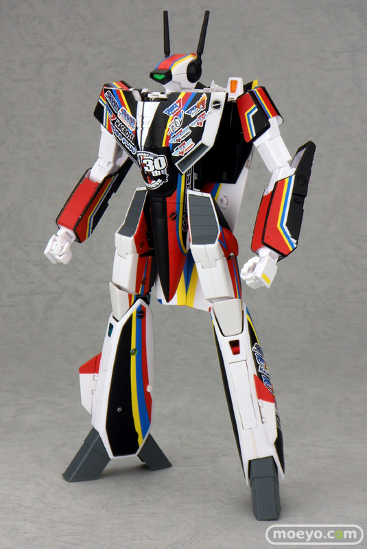 機体はTVシリーズにちなみ主人公機でもある「VF-1J」での商品化!記念デザインの特徴として機体全体も斬新なトリコロール調で鮮やかに施しました。