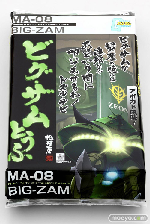ジオン公国軍の試作モビルアーマー「ビグ・ザム」の胴体部と脚部をモチーフとした容器におとうふを充填している商品で、2種類のおとうふと取扱い説明書、ご飯カップが専用箱に梱包された業界初の”組み立てるおとうふ”となっております。