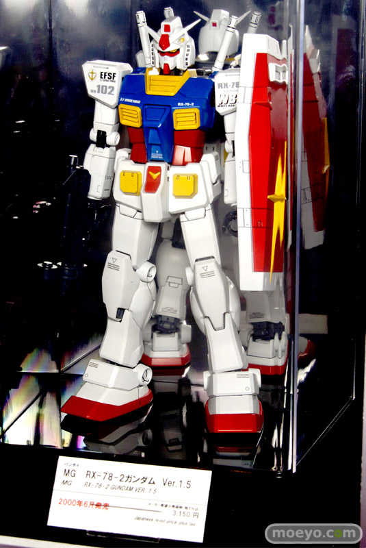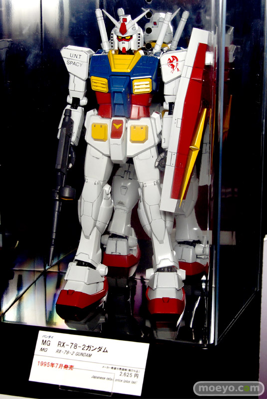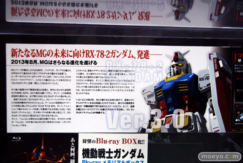 「東京おもちゃショー2013」のビジネスデーにお邪魔してきました!バンダイブースでは、2013年8月発売予定のバンダイ「MG 1/100 RX-78-2 ガンダム Ver.3.0」のサンプルが展示。展示の周りには歴代のMGガンダムも。