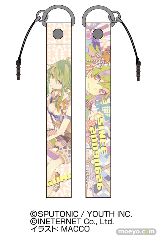 「フルグラフィックTシャツ」「ストラップ」「スポーツタオル」など、人気イラストレーター「MACCO」氏の描く、ポップでキュートな「GUMI」イラストを使用したアイテムは、どれもカラフルで魅力的!