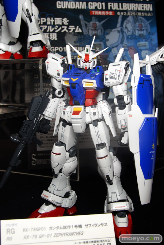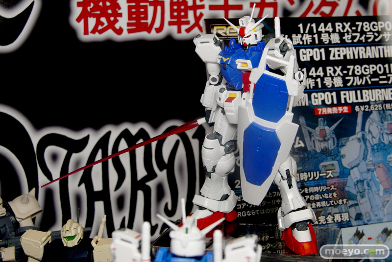 「東京おもちゃショー2013」の会場で、いよいよ今月7月に発売予定のバンダイ「RG 1/144 RX-78GP01 ガンダム試作1号機 ゼフィランサス」のサンプルが展示されていました。その展示の様子を特集でお伝えします。