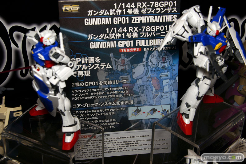 「東京おもちゃショー2013」の会場で、バンダイ「RG 1/144 RX-78GP01 Fb ガンダム試作1号機 フルバーニアン」のサンプルが展示されていました。ゼフィランサス(サンプル特集)と同じく、今月7月発売予定となっています!