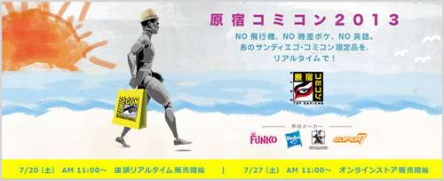 「サンディエゴ・コミコン2013」限定アイテムを、”渡航費ゼロ””プレミア価格ゼロ””日本にいながら””リアルタイム”でゲットできるイベント「原宿コミコン2013」が、ついに明日7月20日(土)より開幕です!!