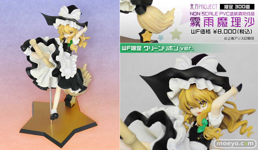 ■ 商品名:「WF限定グリーンリボンver. 霧雨魔理沙」 ■ 発売元:株式会社アルジャーノンプロダクト ■ 仕様:PVC完成品塗装済みフィギュア(中国製) ■ 原型制作:Yoshi氏(とれぱんぐ) ■ 価格:税込8,000円 300個限定 |