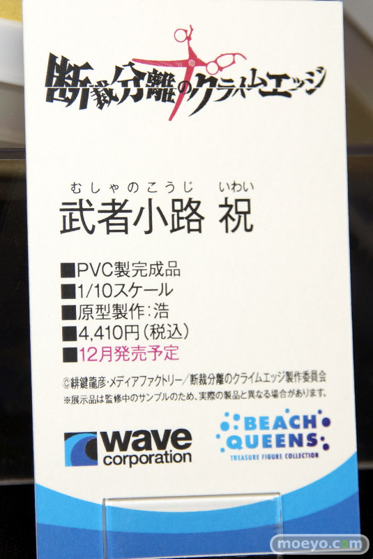 「2013 夏 ホビーメーカー合同展示会」の会場では、ワンフェスに不参加だったウェーブの看板フィギュアブランドである「BEACH QUEENS」の新作がズラリと展示されていました!こちらではそのうち、先日予約が開始された「断裁分離のクライムエッジ 武者小路祝」をお伝え!