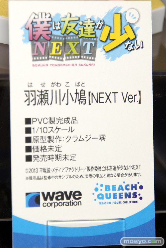 「2013 夏 ホビーメーカー合同展示会」の会場では、ワンフェスに不参加だったウェーブの看板フィギュアブランドである「BEACH QUEENS」の新作がズラリと展示されていました!こちらではそのうち「僕は友達が少ないNEXT 羽瀬川小鳩【NEXT Ver.】」をお伝え!