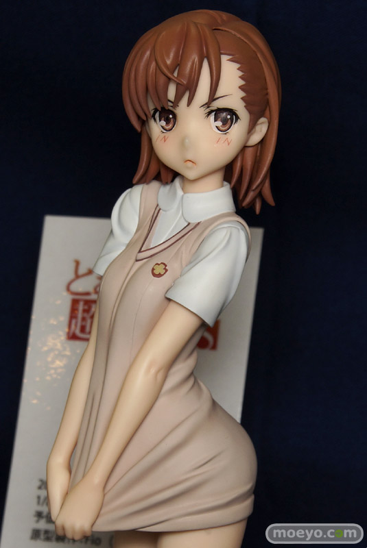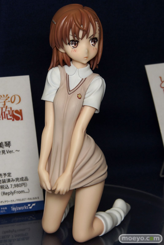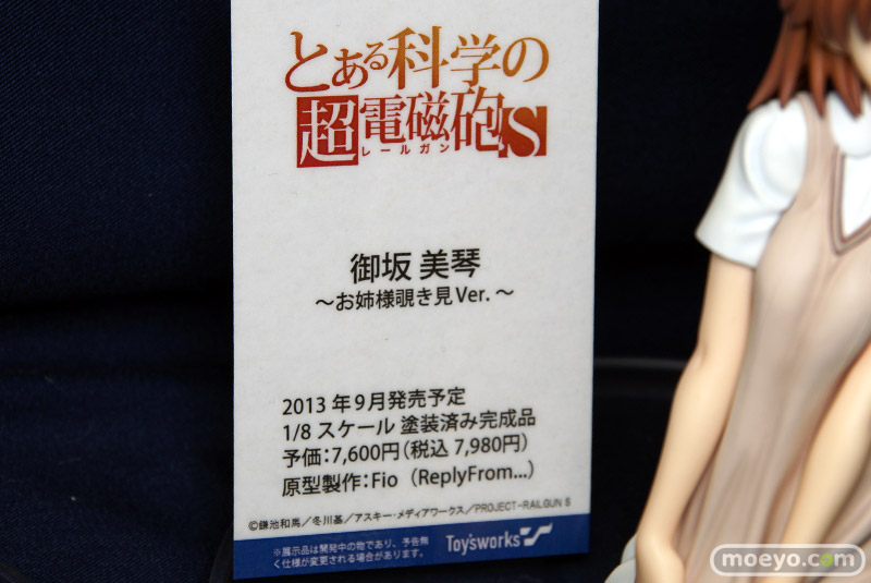 「2013 夏 ホビーメーカー合同展示会」の会場で、2013年9月発売予定のキャラアニ「とある科学の超電磁砲S(レールガン) 御坂美琴 お姉様覗き見Ver.」の彩色サンプルが展示。やや顔を赤らめ困ったような表情と、スカートをはいていない太ももが素晴らしい逸品です!