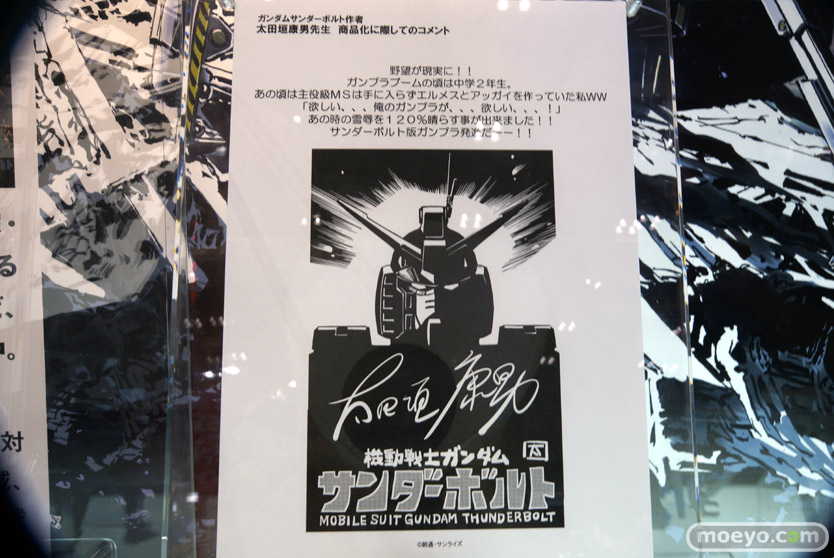 「キャラホビ2013」の会場で、太田垣氏によるガンダム外伝「機動戦士ガンダム サンダーボルト」のMSのガンプラ商品化が発表され、3種の無彩色サンプルが公開!こちらではそのうち「HG フルアーマーガンダム(ガンダムサンダーボルト版)」の無彩色サンプル展示の様子をお伝えします!