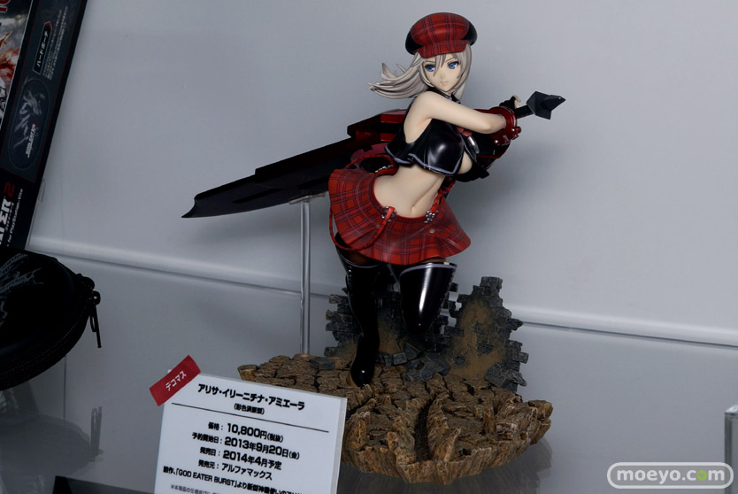 「東京ゲームショウ2013」ビジネスデーのバンダイナムコブース、GE2体験コーナーにて、本日9月20日より予約開始された、アルファマックス「GOD EATER BURST(ゴッドイーターバースト) アリサ・イリーニチナ・アミエーラ」の彩色サンプルが展示!原型制作は2%氏が担当され、美しさと力強さを兼ね備え、下乳具合もバッチリな素晴らしい造形です!