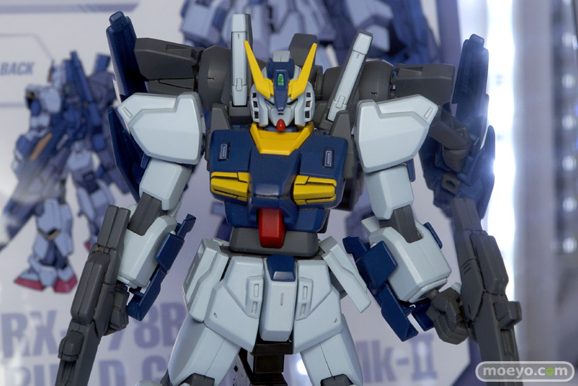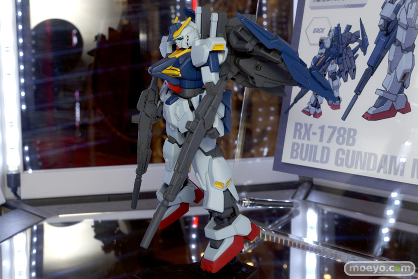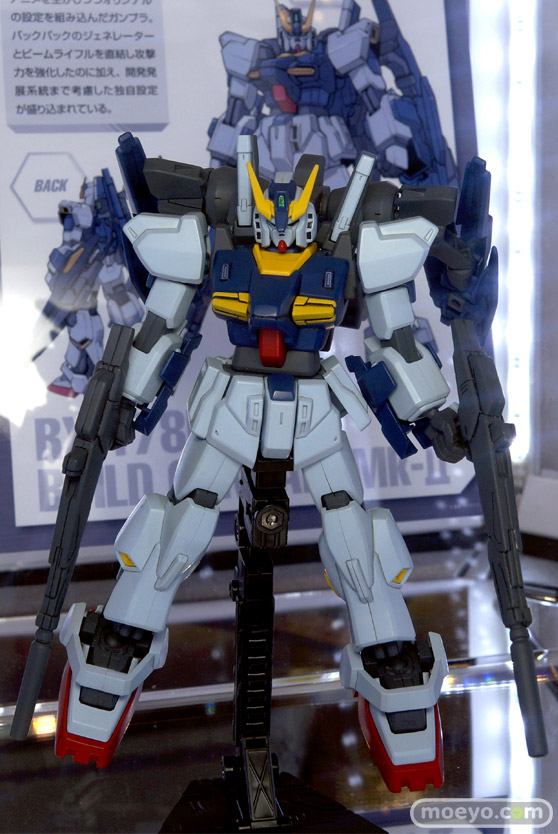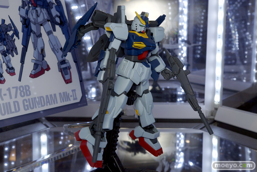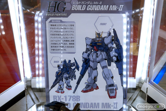 「キャラホビ2013」の会場で、先日予約が開始された、10月7日より放送開始のアニメ「ガンダムビルドファイターズ」に登場する機体をプラモ化した、バンダイ「HG 1/144 ビルドガンダム ガンダムMk-II」の彩色サンプルが展示。全体的にはガンダムMk-IIのシルエットを踏襲しながら、バックパックの巨大化、顔や胸部の形状が大きく変わっているのが特徴です。