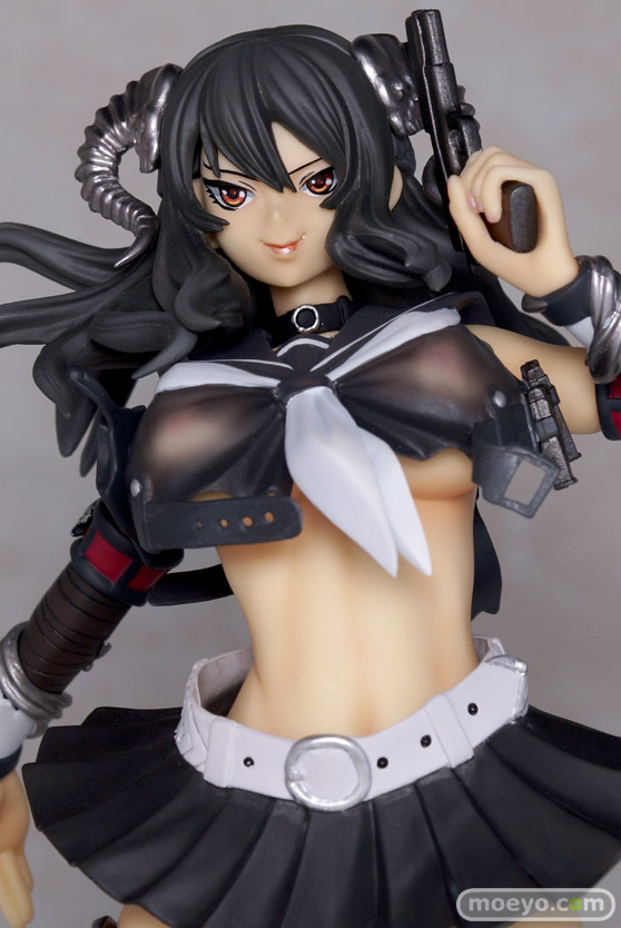 希有馬屋/井上純弌がデザインした同人フィギュア「悪魔子 (山羊悪魔子) 」を自らリメイクし、完全新規原型で商品化。原型だけでなくパーツ構成も一から見直し、同人版とはまた違う魅力を引き出しました。セーラー服の上下、下着パーツは脱着可。頭部は叫び顔とすまし顔の2種類付属、腕パーツは左右2種付属しているので、剣や銃パーツを付け替えてのポーズ変更も可能です。