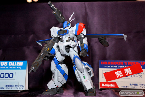 「キャラホビ2013」の2日目となる9月1日のみ開催された「キャラホビマーケット」で出店されていた様々なブースの様子を数十回に分けてお伝えします!こちらでは「B-works」「D-Face」「HAGANE堂」の3ブース。画像はB-worksさんの「1/144 DRAGOON 1 MBD-1F」。