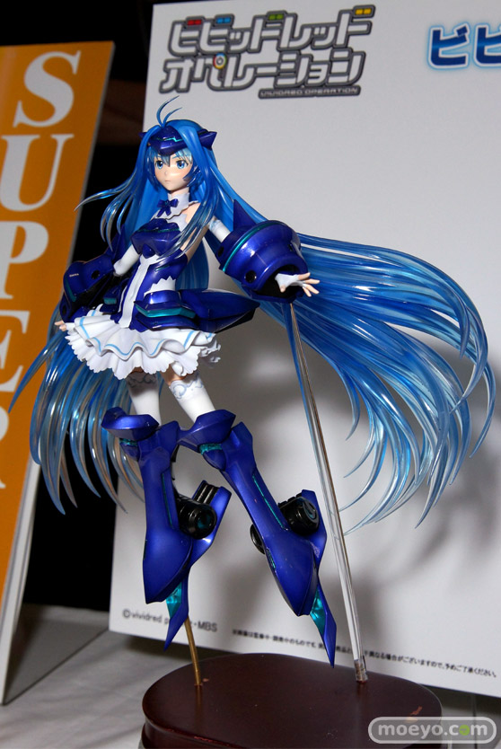 先日予約開始した、グリフォンエンタープライズ「ビビッドレッド・オペレーション ビビッドブルー」の彩色サンプルが、「電撃文庫 秋の祭典2013」の会場で展示されていました。『一色あかねと二葉あおいのドッキングオペレーションにより誕生した姿を、nonスケール(1/7スケール相当)、全高約26cmの圧倒的なボリュームと迫力で立体化しました!』というもので、髪の透明感が美しい印象でした。スカートの中は純白!
