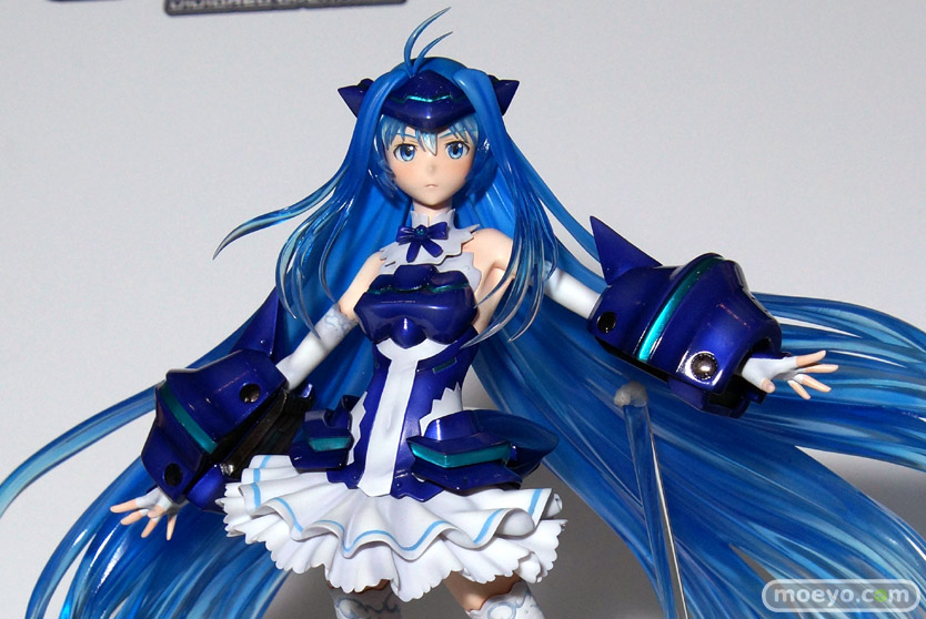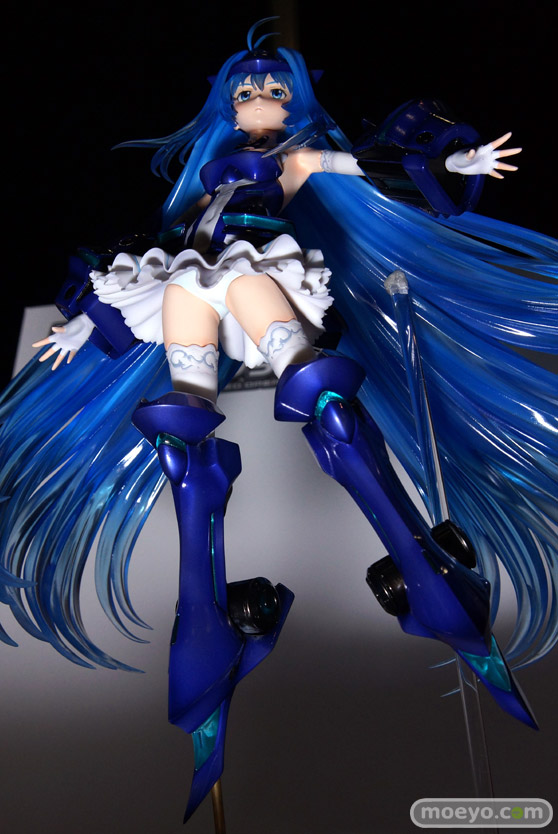 鮮やかなメタリックブルーで彩色されたメカのフォルムと、しなやかなボディーラインとの調和、柔らかく再現されたスカートの繊細なドレープなど、見所も満載です。