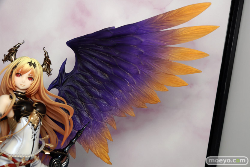 翼や髪、腰の装飾などの造形各所にはクリア成型パーツを使用し、透明塗料と不透明塗料の複合塗装によって織り成される光の透過と陰影にて元イラストの雰囲気を再現しています。