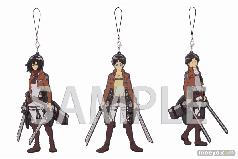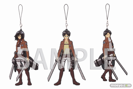 身長170㎝の「エレン」と「ミカサ」は約17cm、160㎝の「リヴァイ」は約16cmサイズで身長設定を1/10スケールにした大きなラバーストラップです。裏面にはキャラクターの名台詞をプリントした、イベント限定特別バージョンの仕様となっています。