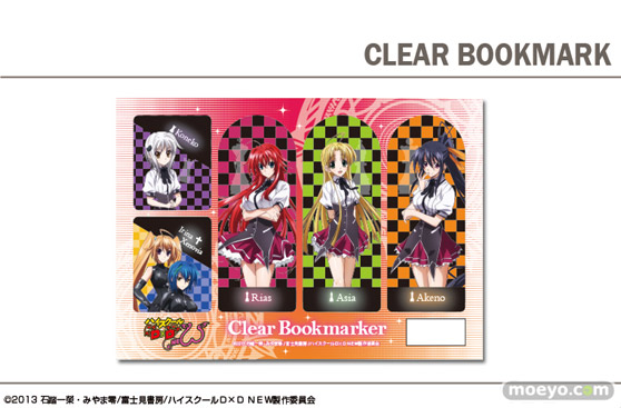 ■ 商品名:「『ハイスクールD×D NEW』クリアしおり」 ■ 発売元:DEZAEGG ■ サイズ:W 210mm×H148mm ■ 価格:税込各630円 ■ 発売:2013年12月中旬 |