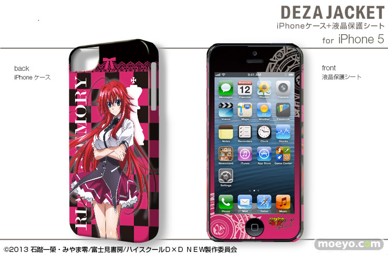 ■ 商品名:「デザジャケット 『ハイスクールD×D NEW』 for iPhone 5/5S」(iPhone 5/5S 用 4種) ■ 発売元:DEZAEGG ■ セット内容:iPhone 5/5S 用ケース1個、液晶保護シート1枚 ■ 価格:税込3,980円 ■ 発売:2013年12月上旬 |