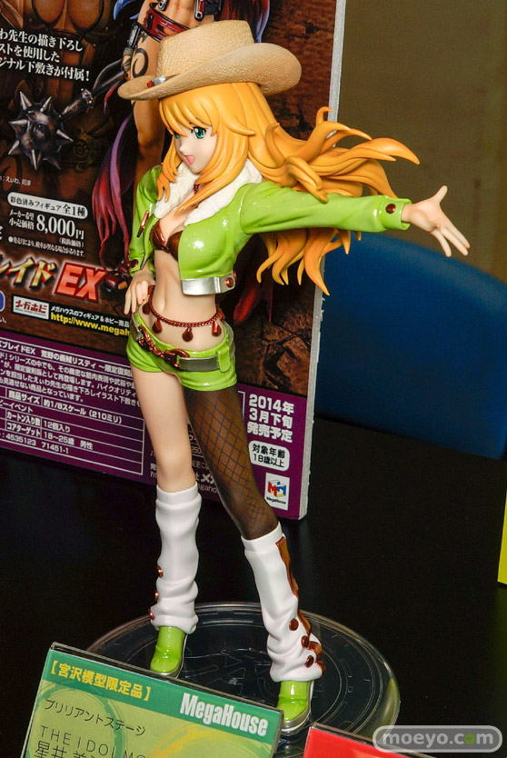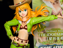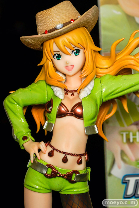 「宮沢模型 第32回 商売繁盛セール」の会場で、本日(11月13日)より情報解禁&予約開始した、メガハウス「ブリリアントステージ アイドルマスター2 星井美希 エバーグリーンリーブスver.」の彩色サンプルが展示。PS3版の美希のキービジュアルにもなったエバーグリーンリーブスの衣装での立体化で、新規に「ストローテンガロン」も付属します!