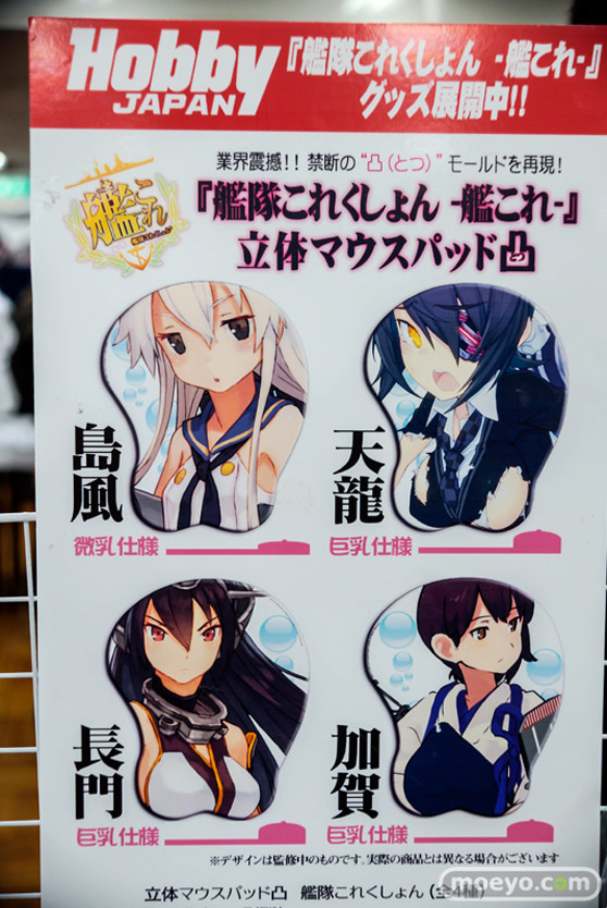 「宮沢模型 第32回 商売繁盛セール」のホビージャパンブースで、2014年1月上旬に発売予定の「立体マウスパッド凸(とつ) 艦隊これくしょん」4種のうちの一つ「島風」の実物サンプルが展示されていました。胸の先っちょを再現した凸具合を確認したところ、結構すごい感じでした!
