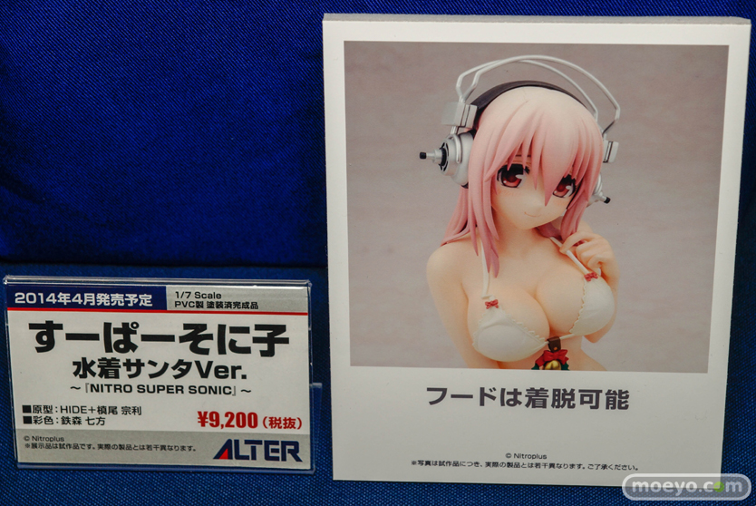 アルター「NITRO SUPER SONIC すーぱーそに子 水着サンタVer.」の彩色サンプルが、「宮沢模型 第32回 商売繁盛セール」のアルターブースで展示。『フードをかぶって可愛らしく首をかしげた仕草や、照れたように微笑んだ表情が魅力的な仕上がり。』というもので、グラマラスなプロポーションもしっかりむっちり再現されています!製品版ではパーツの差替えでフードを外すことも可能。