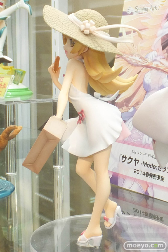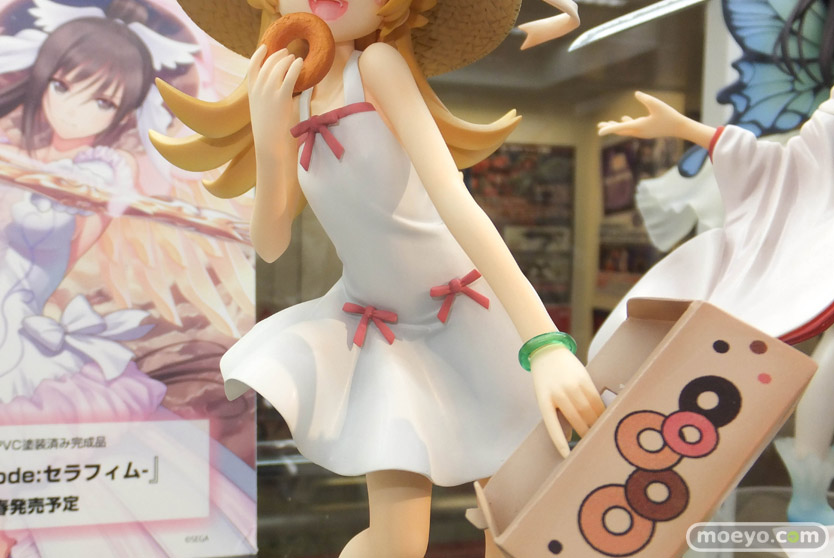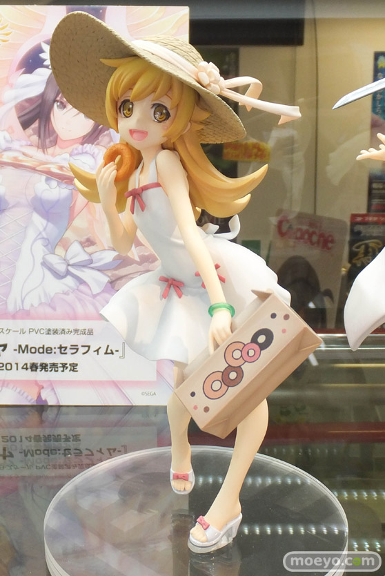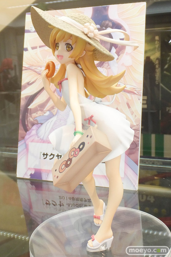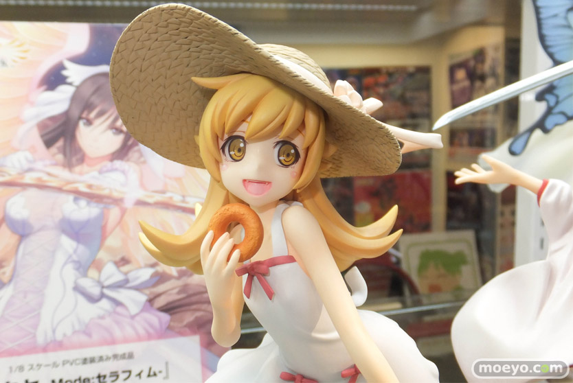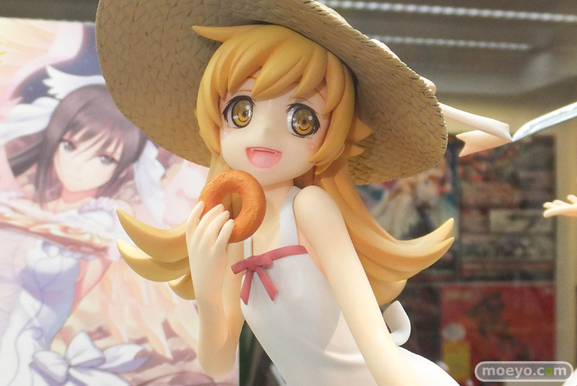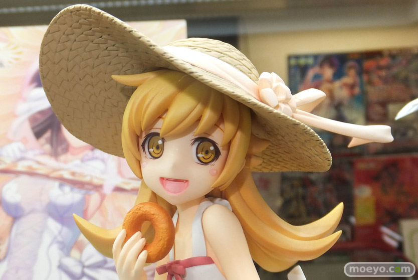 先日予約が開始された、コトブキヤ「偽物語 忍野忍」の彩色サンプルが、コトブキヤ秋葉原館4Fで展示中です。『白いワンピース姿と可愛らしい麦わら帽子にて立体化』というもので、展示されていた『大好物のドーナツを持って無邪気で上機嫌な「可愛らしい笑顔」』のほか、製品版では『吸血鬼らしい、流し目の「妖しい微笑み」』のフェイスパーツも付属するようです!頑張って確認したところ、パンツ可愛らしい白でした!