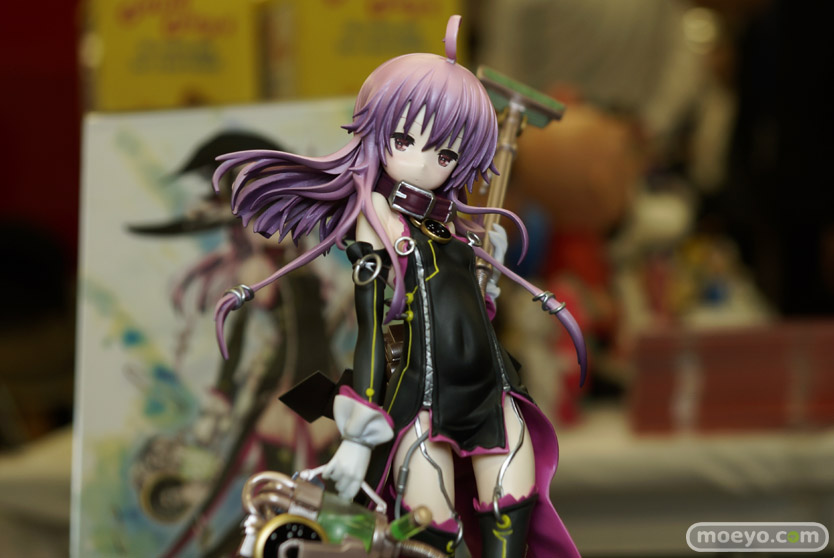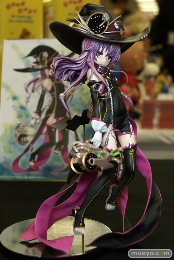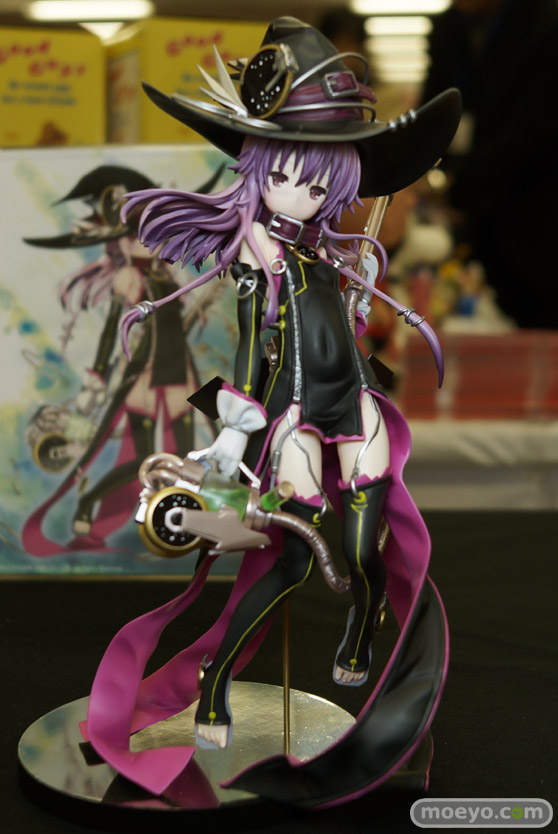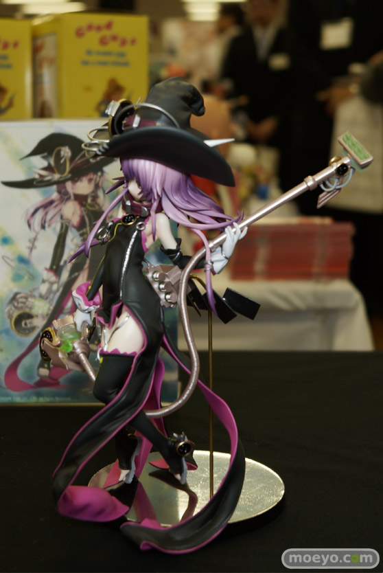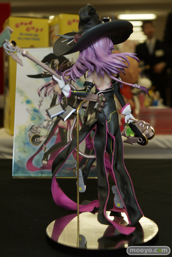 「宮沢模型 第32回 商売繁盛セール」の会場で、本日(11月20日)より予約が開始された、スクウェア・エニックス初のスタチュータイプの美少女フィギュアという、「拡散性ミリオンアーサー ニムエ」の彩色サンプルが展示。『イラストレーターrefeia先生のカードイラスト「帰化型ニムエ」を元に、360度見て楽しめる立体感と、装飾品やアイテムを細部まで再現』というもので、帽子は着脱式となり、付属の「アホ毛」パーツが装着可能となっています。