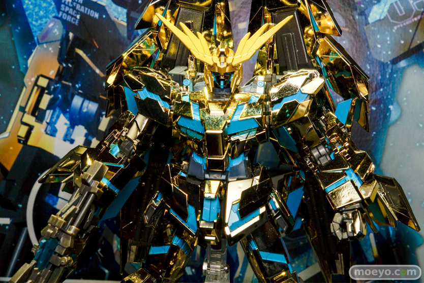 本日11月21日(木)~24日(日)までの4日間、アキバUDX2Fで開催中の「ガンプラEXPOワールドツアージャパン2013」の会場では、当然のように新作のガンプラの展示や情報の公開がありました。その中から気になったものをいくつか、ダイジェスト形式のミニフォトレポートとしてお伝えします!画像は輝く黄金が美しい、「MG ユニコーンガンダム3号機 フェネクス」。