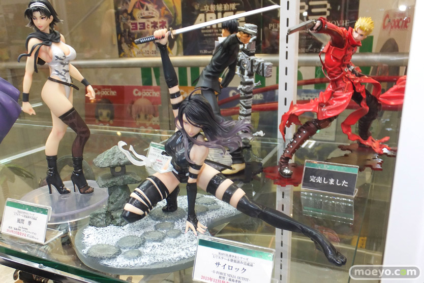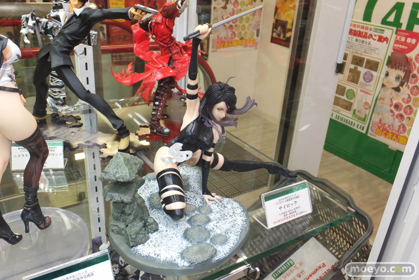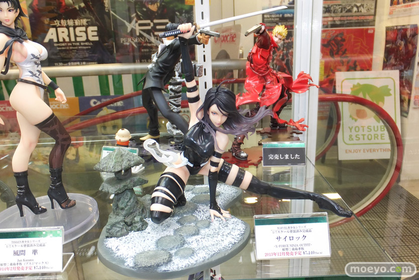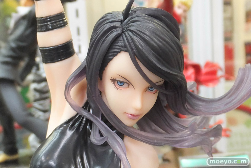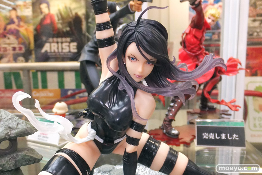 コトブキヤ「MARVEL BISHOUJO(マーベル×美少女) PSYLOCKE サイロック -X-FORCE NINJA OUTFIT-」のPVC彩色サンプルが、コトブキヤ秋葉原館4Fで展示中です。『X-FORCE(エックスフォース)のシックな黒い装備一式をまとい、しなやかな体を感じさせる重心の低い構えで油断なく敵を見据える戦闘的なスタイルで立体化』というもので、凛々しくも麗しいお顔と、後ろから見たときのセクシーなお尻がとても魅力的です!